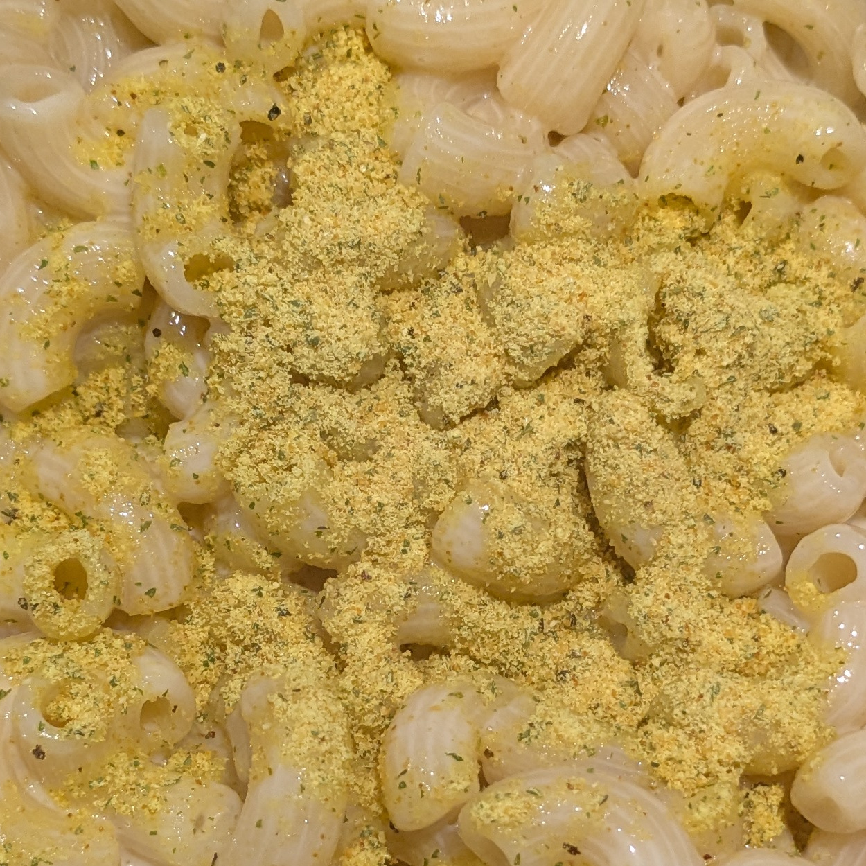 Première bouchée, ça semble plein de saveur, mais après la deuxième on commence à se rendre compte que c'est finalement une attaque de sel et non de la saveur qui frappes les papilles gustatives. On a beau chercher, le goût de l'ail est introuvable. Sinon, c'est un bon mélange, la saveur du fromage est très bonne pour ce type de produit, et le parmesan domine, ce qui n'est pas une mauvaise chose! Pour les assaisonnements on dirait qu'il y a un goût similaire, mais pas identique, à la poudre jaune qu'ils vendent comme du bouillon de poulet en poudre. En goûtant aux restants dans les pochettes et sachets, la sauce au fromage goûte un peu le fromage Singles blanc, les assaisonnements goûtent la poudre d'oignon avec un très léger goût d'ail, tandis que le parmesan goûte exactement comme celui vendu en récipient par Kraft.